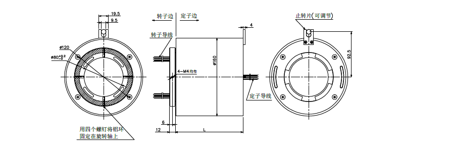 緊定螺絲固定。定子部分通過止轉(zhuǎn)片與設(shè)備固定部位連接。 |