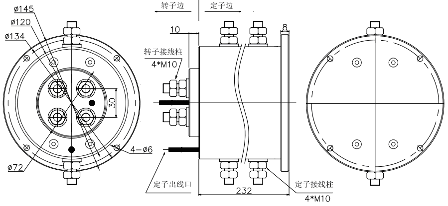 如圖所示:將導電環裝在傳動軸需要的位置,用轉子上四個